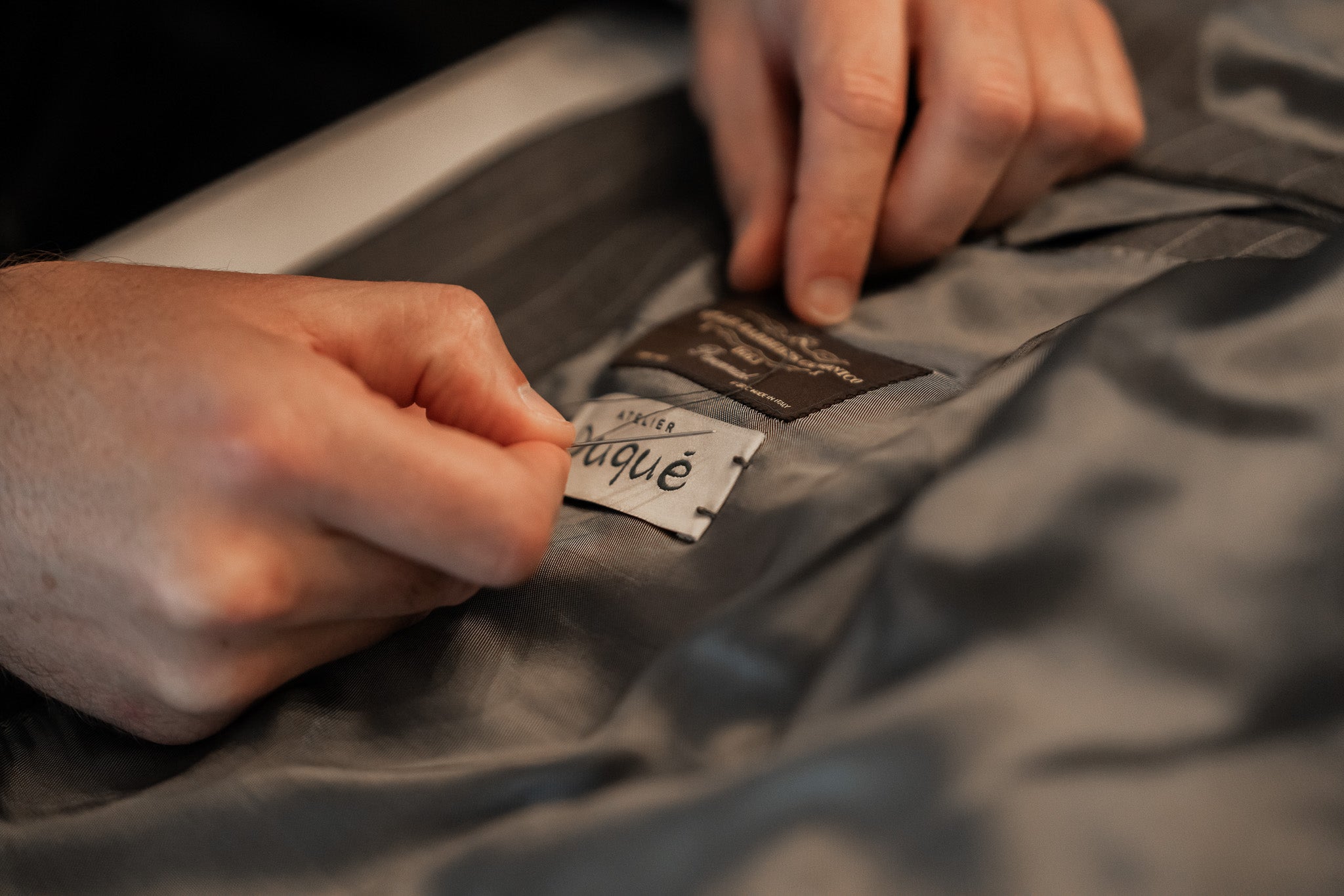 De essentie van Atelier Duqué schuilt in ons vakmanschap. Elke creatie wordt met de grootste precisie en aandacht vervaardigd, waarbij geen enkel detail aan het toeval wordt overgelaten. Van de eerste steek en de opbouw van het canvas tot de gepersonaliseerde afwerking. Met de hand vervaardigde knoopsgaten of een iconische Napolitaanse schouderinzet getuigen van pure ambacht.