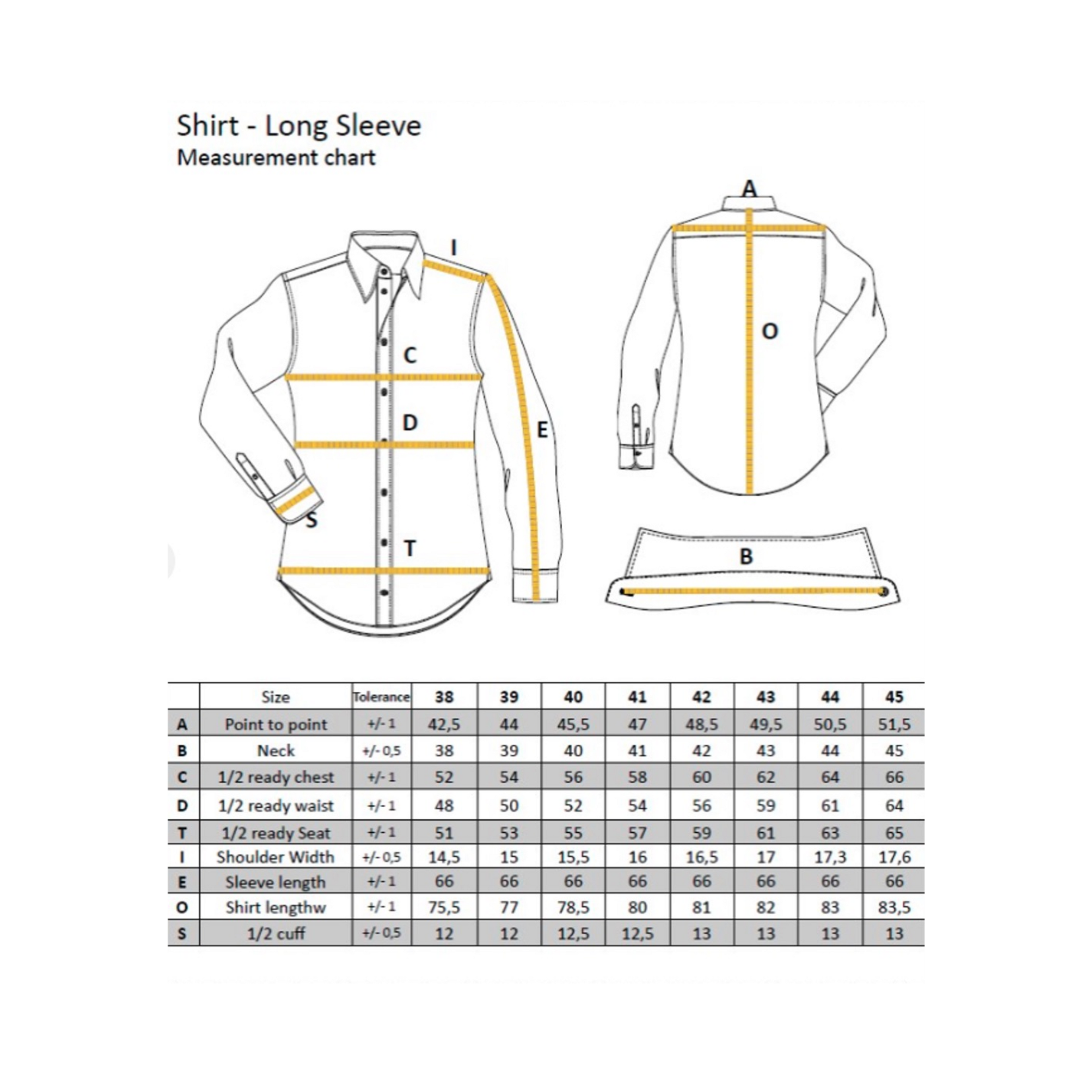 Windsorkraag, één knoop, kraagdiepte 35 mm, enkele manchet rond 65 mm, voorpand met enkele plooi, 129 g/m², dubbel getwijnd, parelmoeren knopen, kraagverstevigers, reserveknopen.